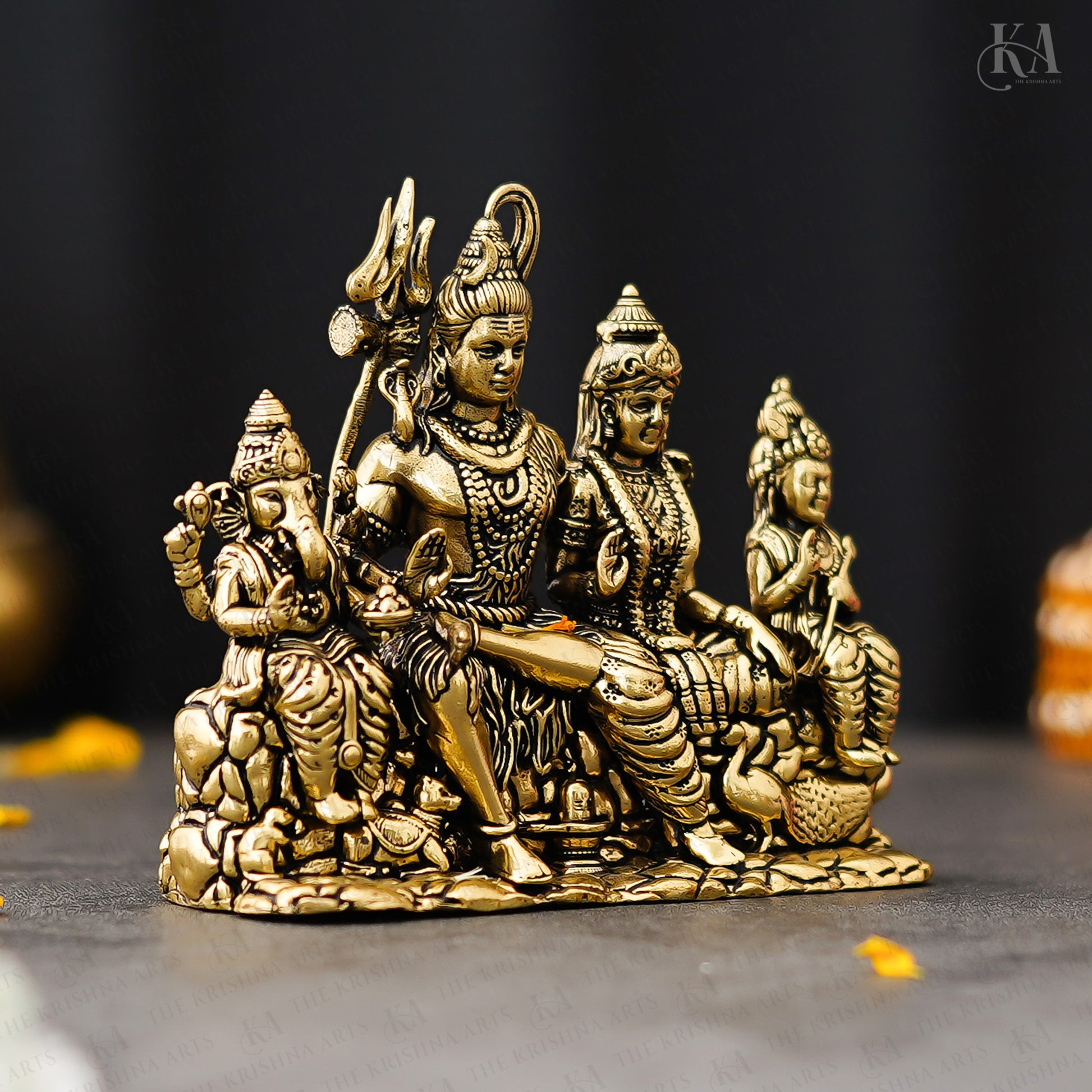 Pure Brass Shiv Parivar Idol-Lord Shiva, Parvati, Ganesha & Kartikeya